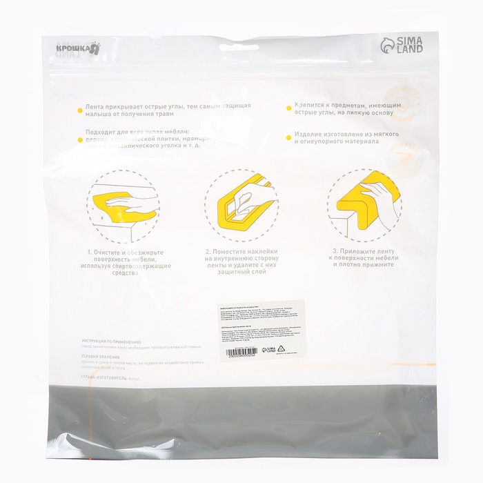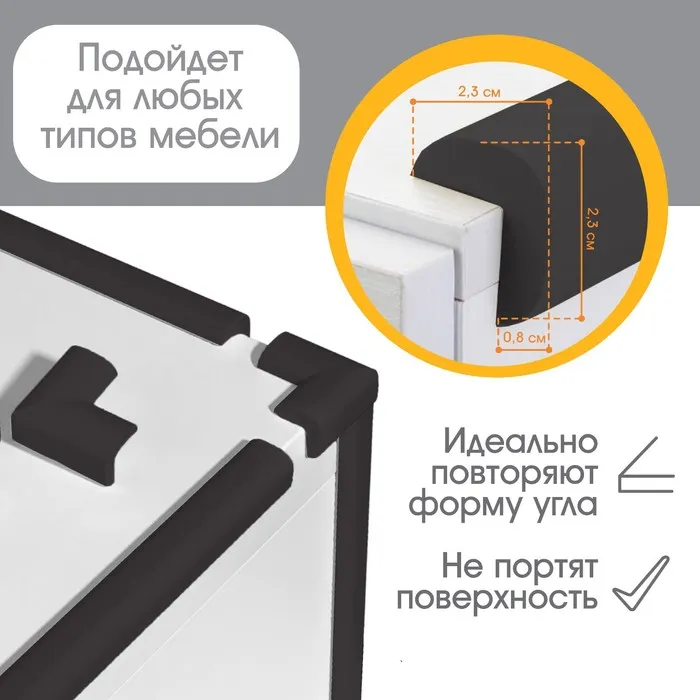 Лента защитная для углов мебели, 2 м, ширина 2.3 см, L-профиль, чёрная, Крошка Я — Характеристики