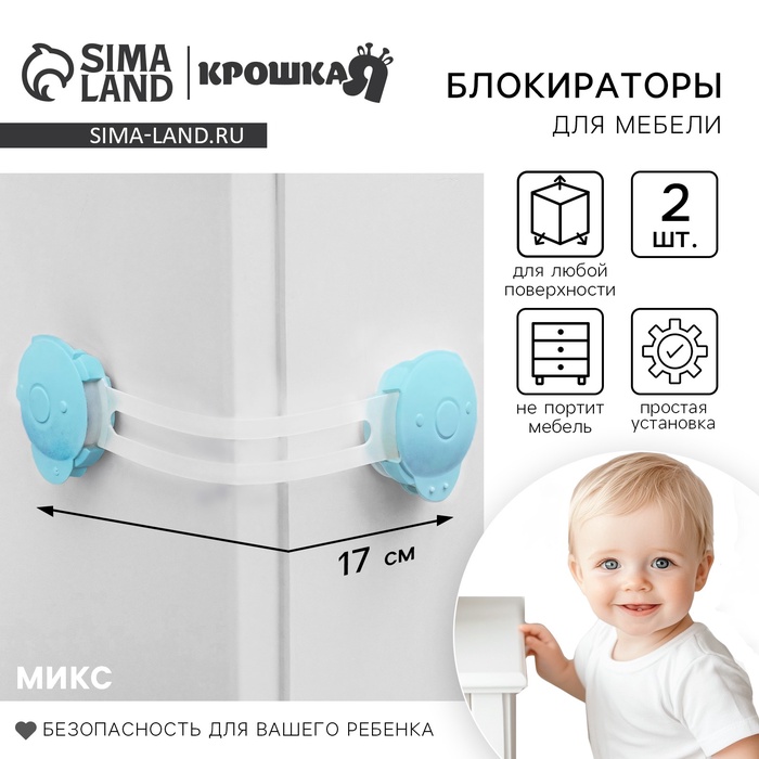 Блокираторы для дверей и ящиков, универсальные, гибкие, 17 см, 2 шт., МИКС, Крошка Я