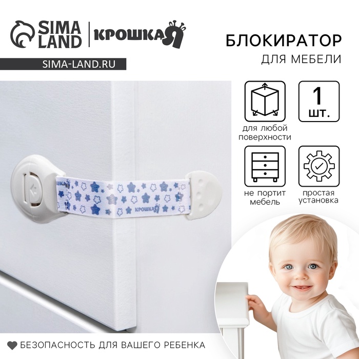 Блокиратор для дверей и ящиков Крошка Я, универсальный, тканевый, 22 см, белый