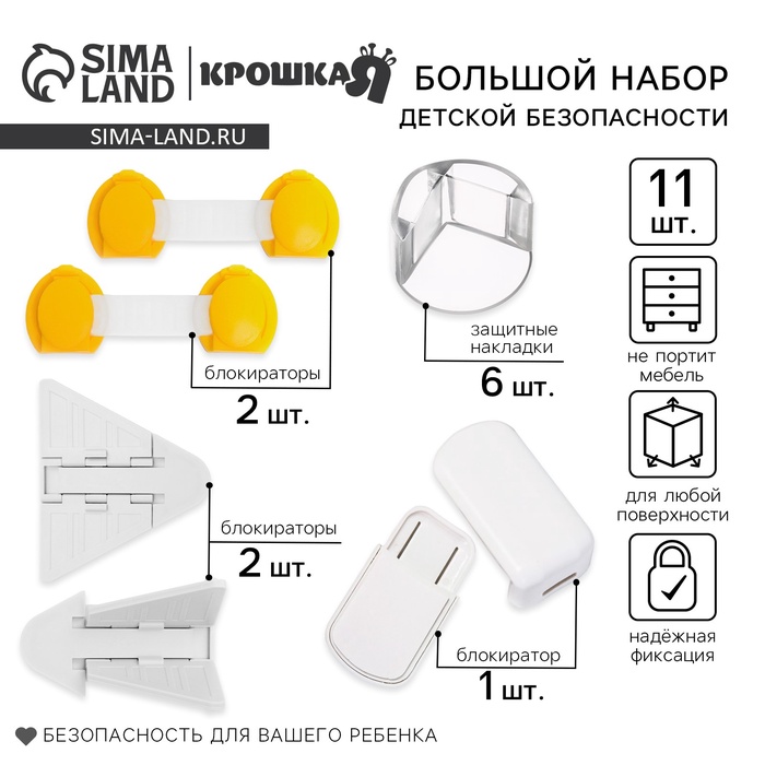 Набор для детской безопасности Крошка Я: блокираторы, уголки, 11 шт