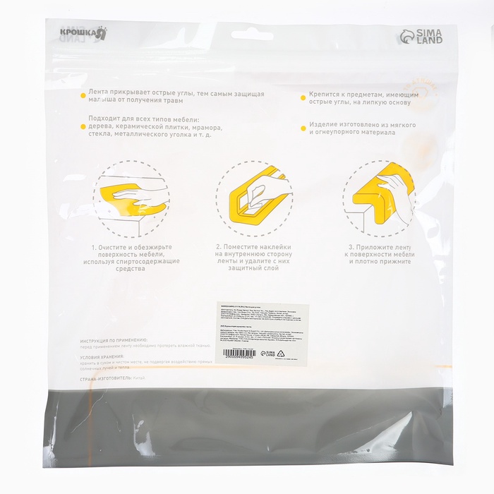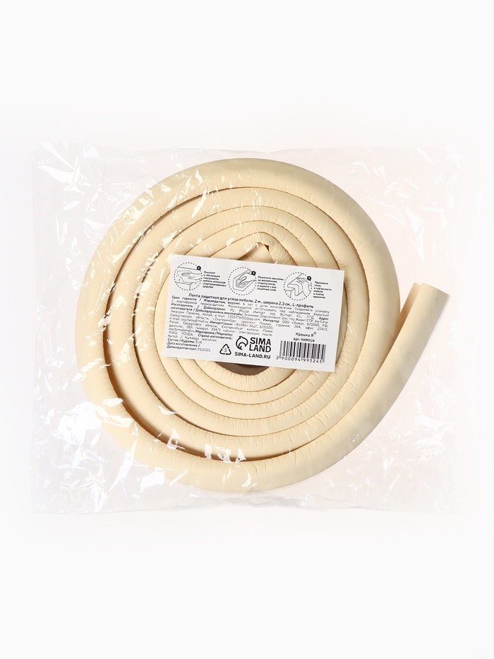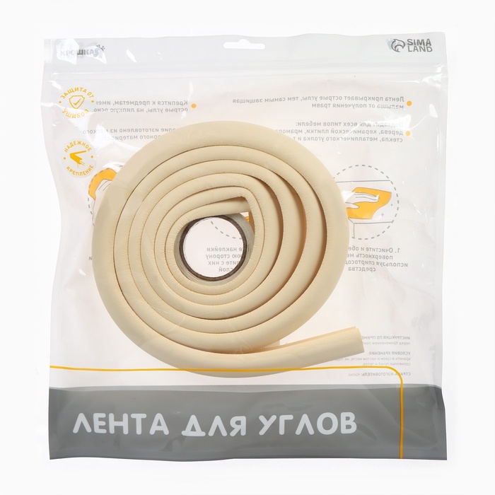 Лента защитная для углов мебели, 2 м, ширина 2,3 см, L-профиль, цвет бежевый, Крошка Я — Характеристики