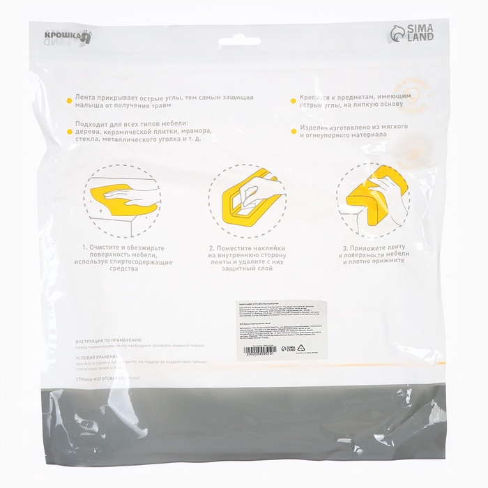 Лента защитная для углов мебели Крошка Я, 2 м, ширина 3.5 см, L-профиль, белый — Характеристики