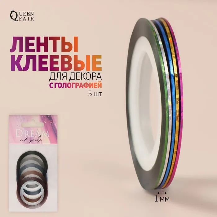 Ленты клеевые для декора «DREAM», с голографией, 5 шт, 7,5 м, 1 мм, разноцветные — Характеристики