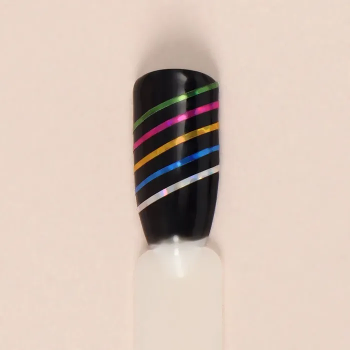 Лента представляет собой тонкую самоклеящуюся полоску для дизайна ногтей. Её можно использовать на лаковом, гель-лаковом или любом другом искусственном покрытии.