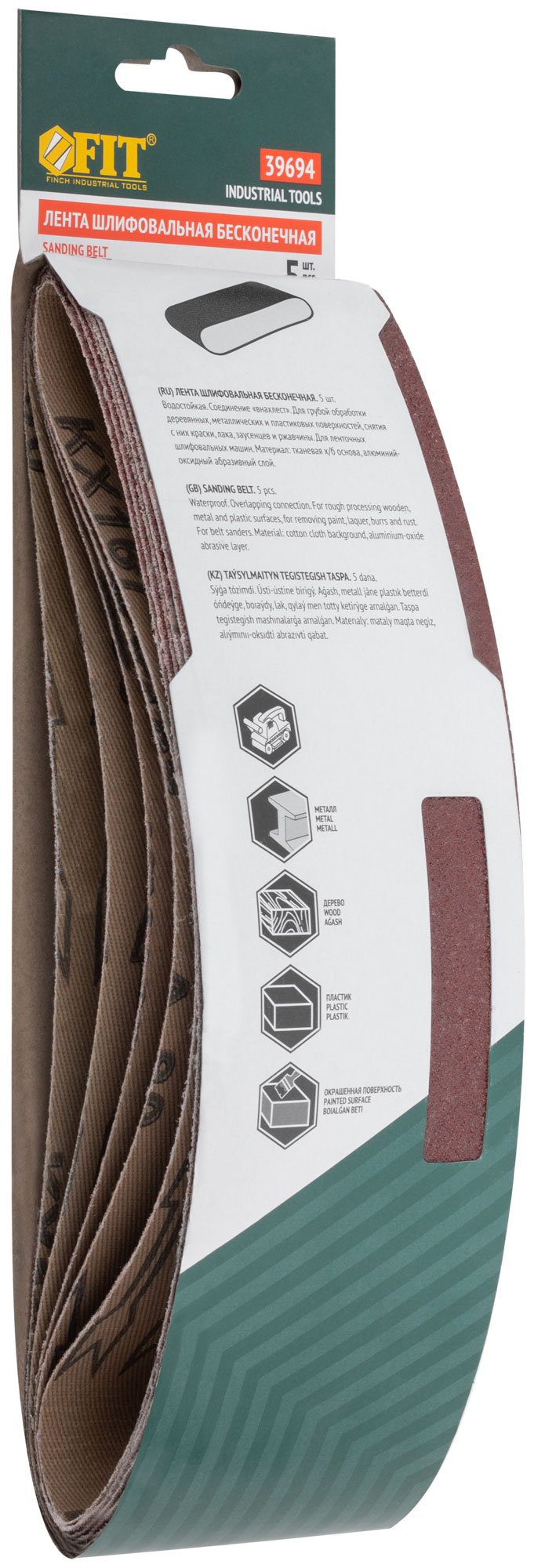 Шлифовальные ленты FIT изготовлены на основе оксида алюминия, что гарантирует их устойчивость к износу и способность работать с различными материалами. Соединение «внахлёст» обеспечивает надежность конструкции и устойчивость к разрывам даже при высоких нагрузках.