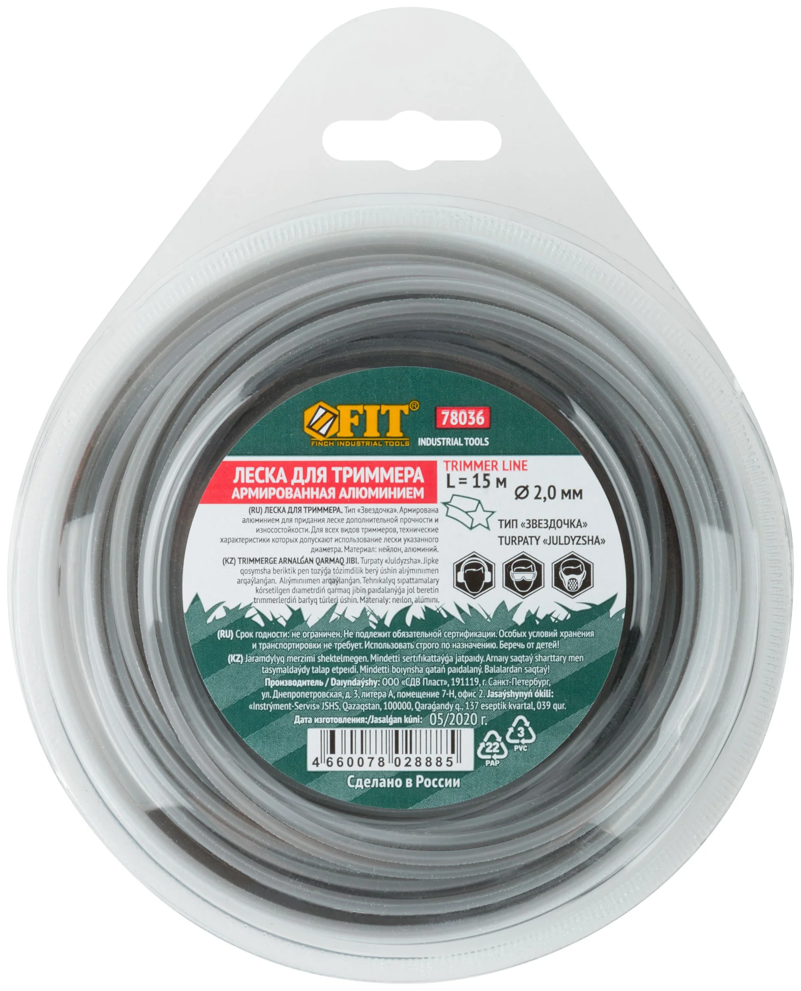 Леска для триммеров FIT 2,0 мм х 15 м, армированная алюминием