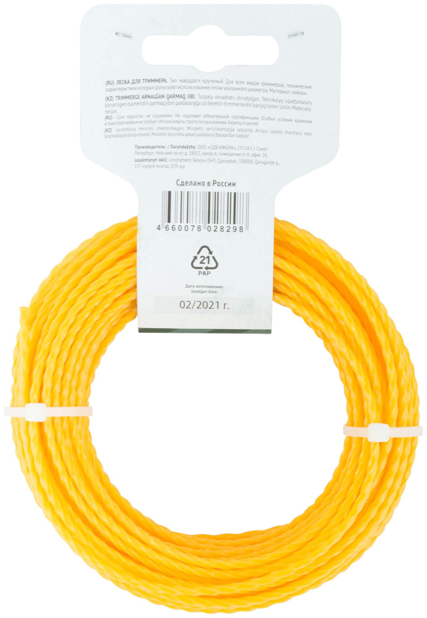 Леска выполнена из прочного нейлона, что гарантирует её долговечность и устойчивость к износу. Квадратное сечение обеспечивает лучшее сцепление и уменьшает возможность скольжения, повышая эффективность резки.