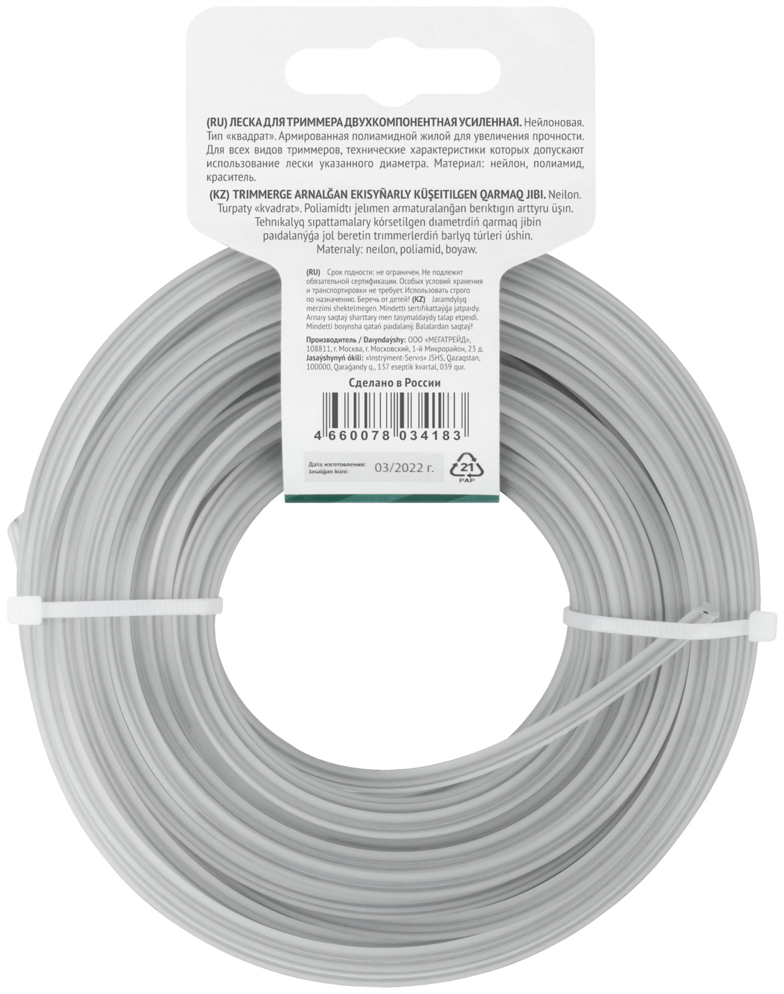 Леска изготавливается из прочного нейлона, армированного полиамидной жилой, что значительно увеличивает её прочность на разрыв. Благодаря квадратной форме сечения, леска обеспечивает более чистый и аккуратный срез, что особенно важно для профессионального использования.