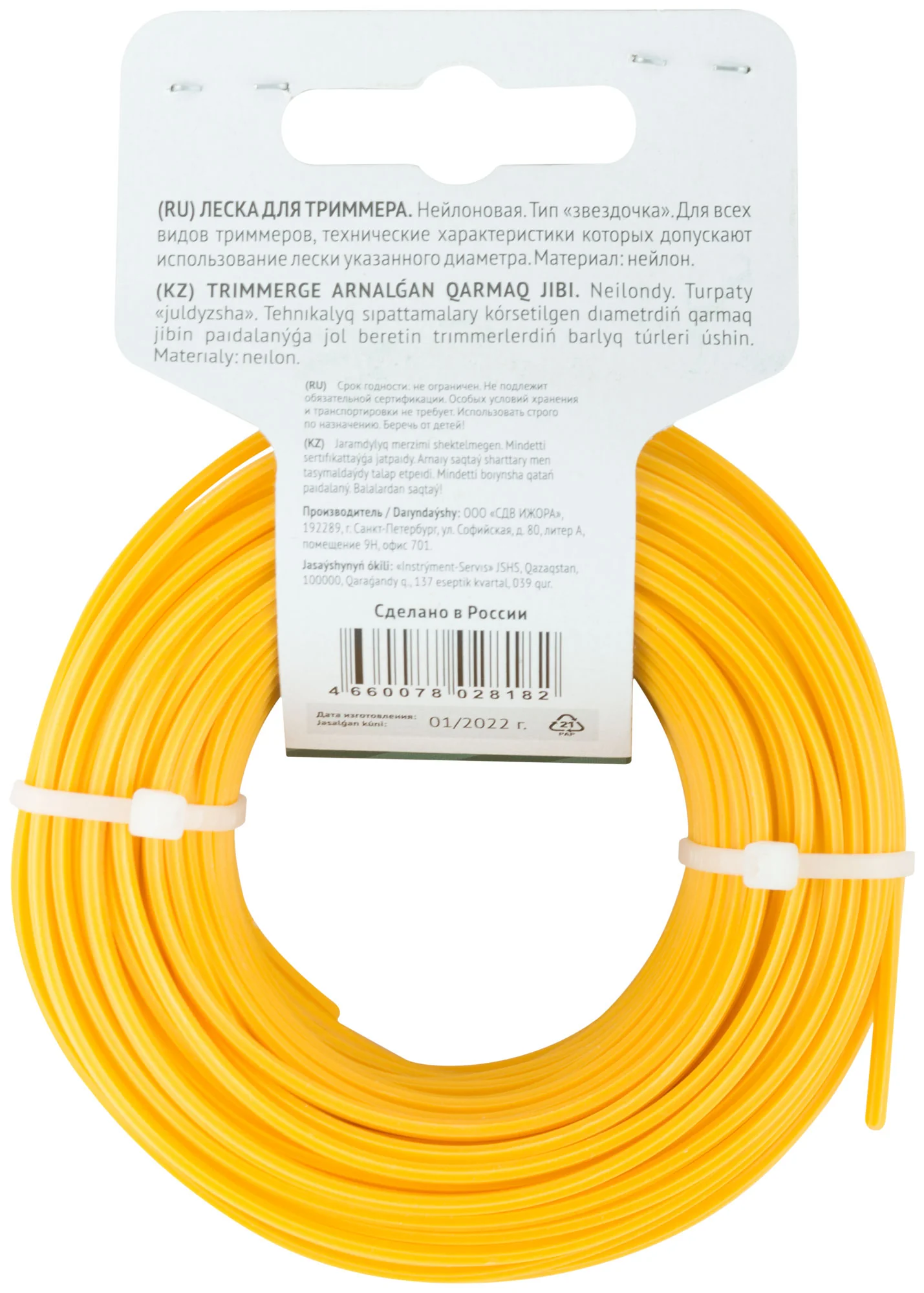 Изготовленная из нейлона, леска обладает высокой износостойкостью и долговечностью. Типоразмер "Звездочка" 2,5 мм х 25 м обеспечивает оптимальную длину для длительного использования без частой замены.