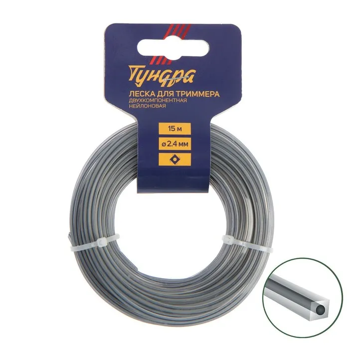 Леска для триммера ТУНДРА, сечение квадрат с жилой, двухкомпонентная, d=2.4 мм, 15 м — Характеристики