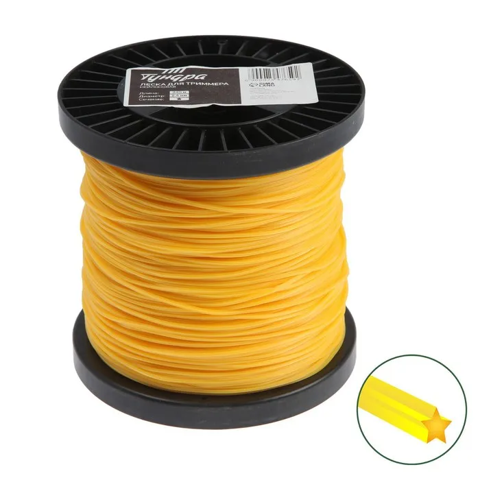Сечение лески имеет форму звезды, что обеспечивает эффективную резку травы и другой растительности. Не имеет витой формы и жилы.
