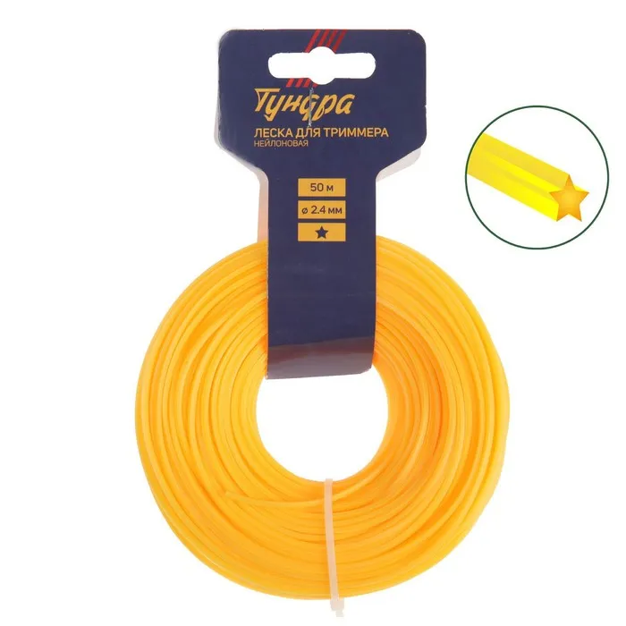 Леска для триммера ТУНДРА, сечение звезда, d=2.4 мм, 50 м, нейлон — Характеристики