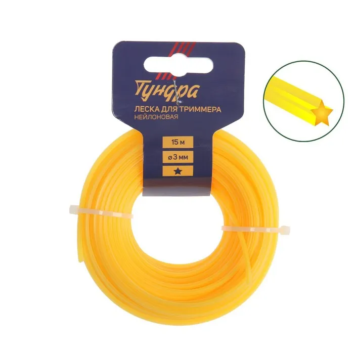 Сечение лески имеет форму звезды, что обеспечивает эффективную резку травы и другой растительности. Не имеет витой формы и жилы.