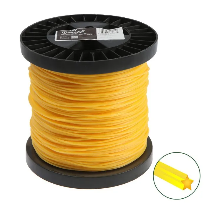Сечение лески имеет форму звезды, что обеспечивает эффективную резку травы и другой растительности. Не имеет витой формы и жилы.