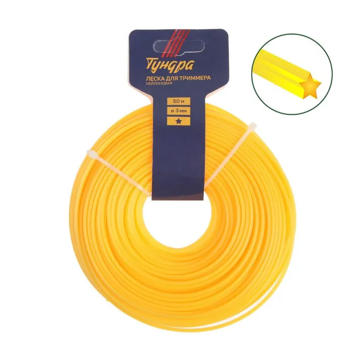 Сечение лески имеет форму звезды, что обеспечивает эффективную резку травы и другой растительности. Не имеет витой формы и жилы.
