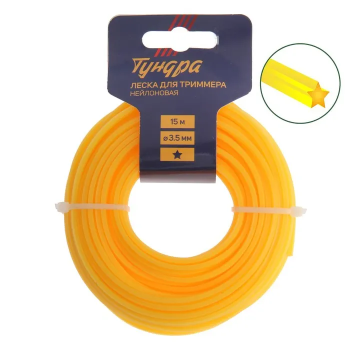 Сечение лески имеет форму звезды, что обеспечивает эффективную резку травы и другой растительности. Не имеет витой формы и жилы.