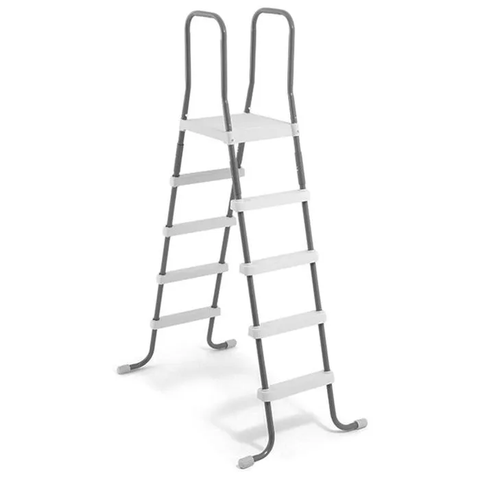 Лестница устанавливается по обе стороны бассейна. Каркас изготовлен из нержавеющего металлического сплава, ступени сделаны из прочного пластика. Выберите подходящее место для входа в бассейн и поставьте лестницу там, где вам удобно.
