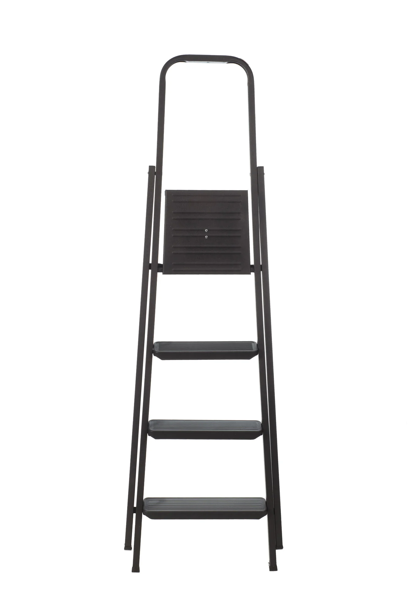 Лестница выполнена из прочной стали и оснащена четырьмя ступенями, надежно закрепленными сваркой. Благодаря антикоррозийному покрытию и черному металлику, она устойчива к внешним воздействиям и долговечна. Компактные размеры в сложенном виде (1580x490x80 мм) и вес 5,3 кг делают её удобной для транспортировки и хранения.