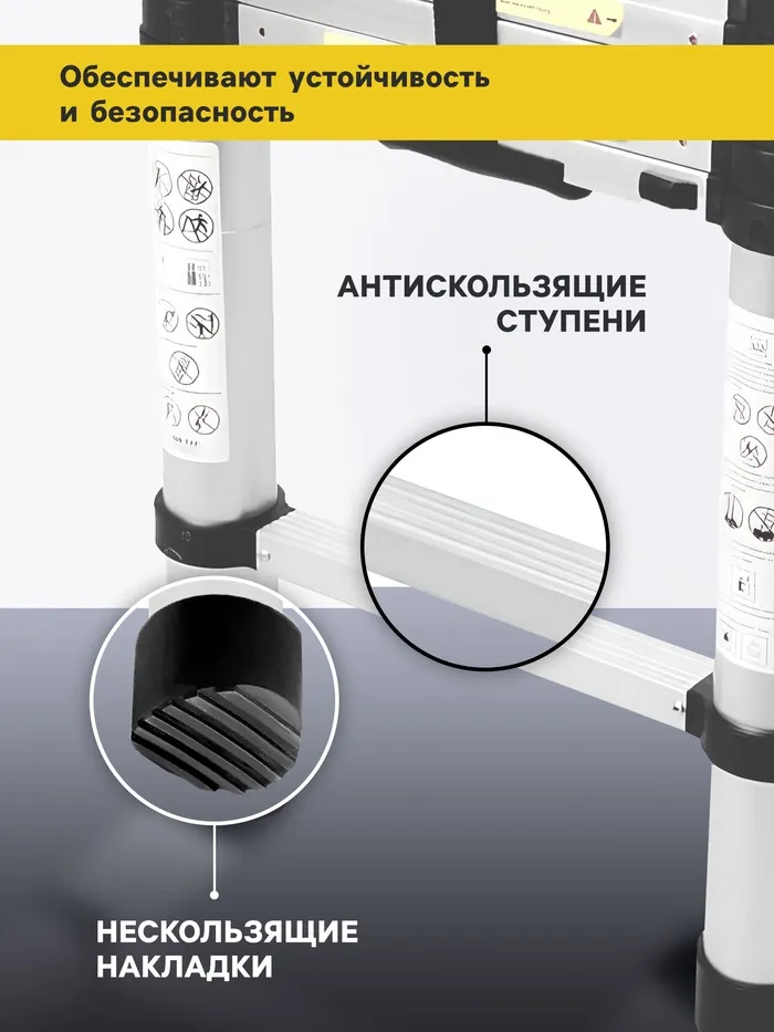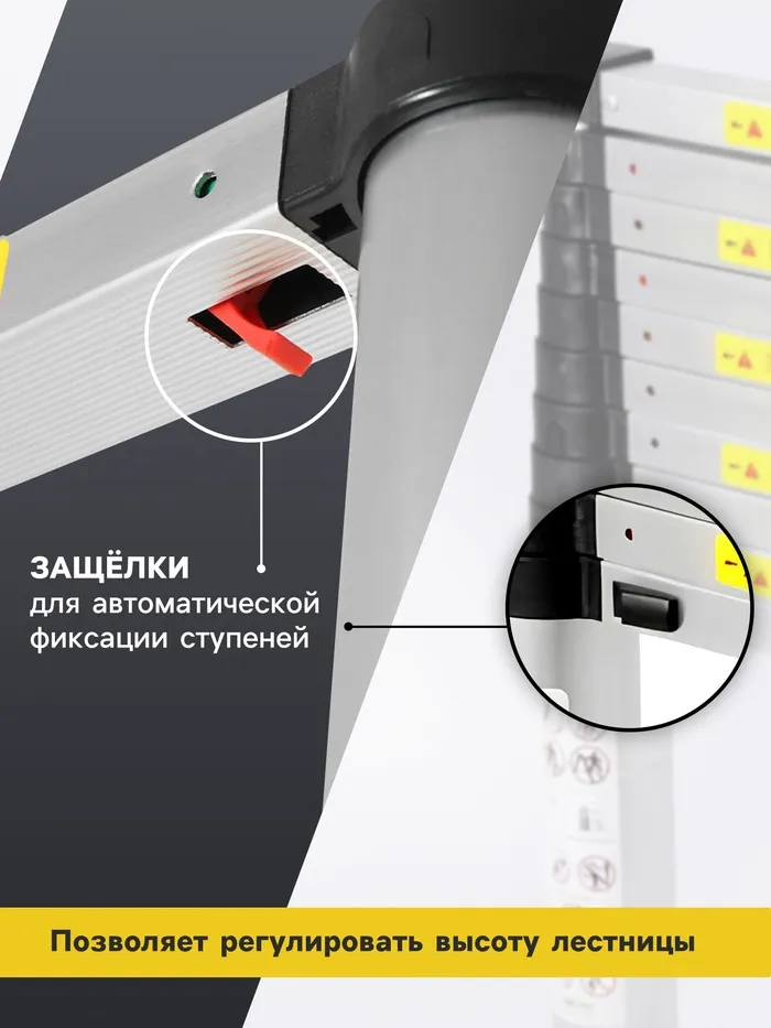 Лестница телескопическая ТУНДРА, алюминиевая, 7 ступеней, 2 м — Характеристики