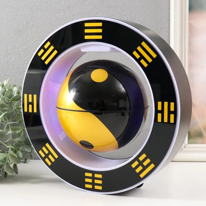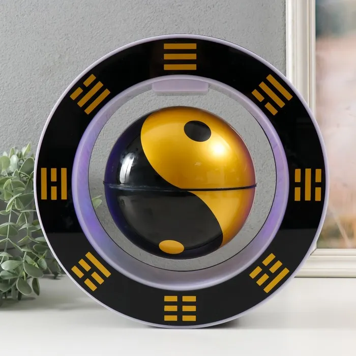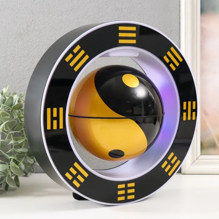 Левитирующий сувенир свет "Инь-ян в круге" чёрный шар d=14 см 26х14х26 см