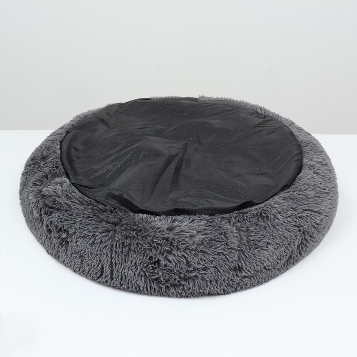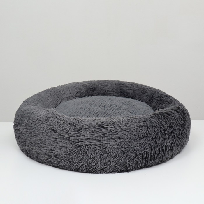 Лежанка для собак и кошек, длинный мех, 45×35×11 см, серая