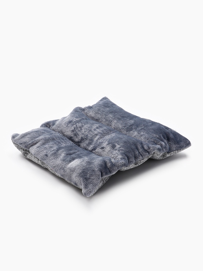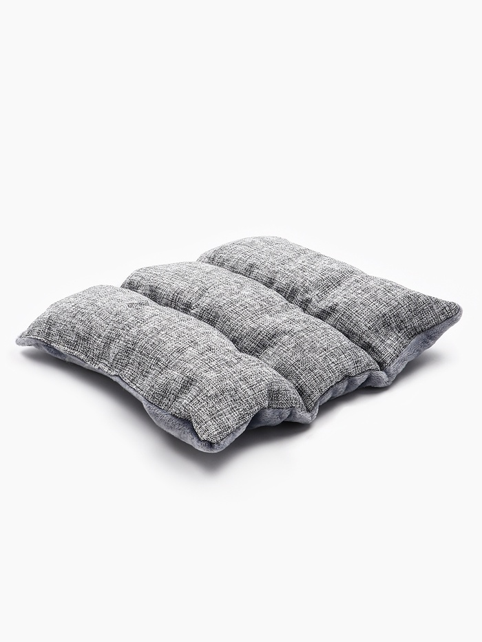 - Серый текстиль: цвет не выделяет шерсть, не требует немедленной чистки, не конфликтует с деревянной или бетонной отделкой. Ткань плотная, с матовой поверхностью — не скользит, не собирает пыль, не даёт бликов при искусственном освещении.