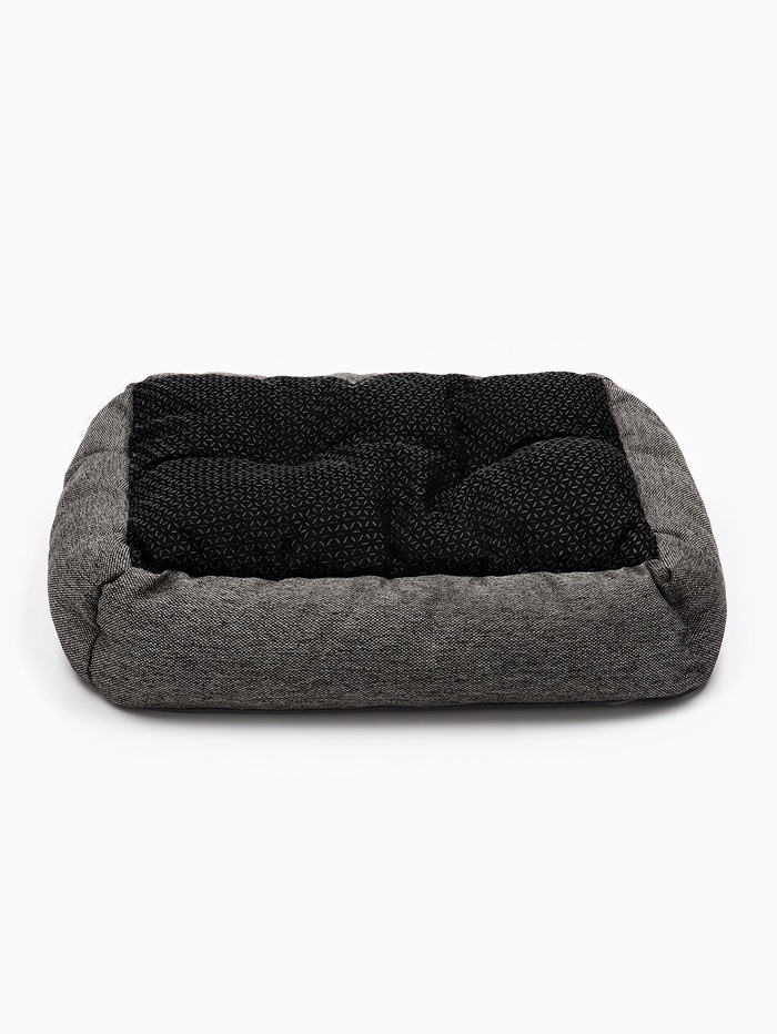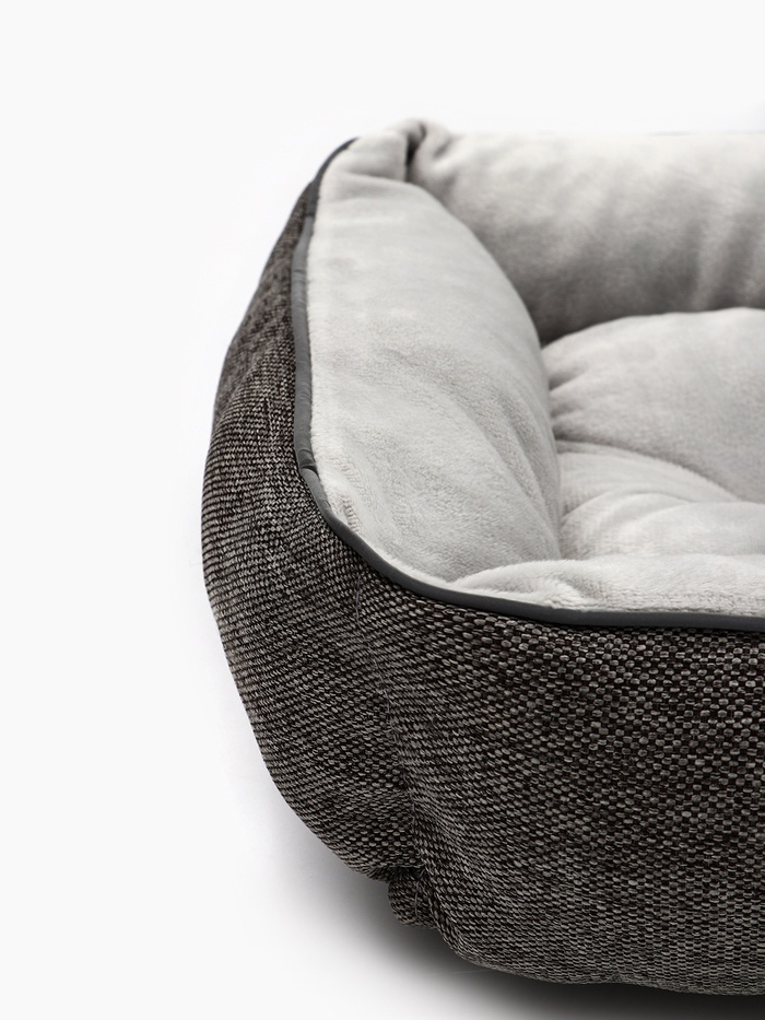 - Прямоугольная платформа — логика малогабаритного размещения: узкая форма позволяет поставить лежанку на подоконнике, на тумбе, в нише книжной полки или под столом — там, где овальные или круглые аналоги не встанут. Это не вынужденная экономия места, а осознанный выбор расстановки.