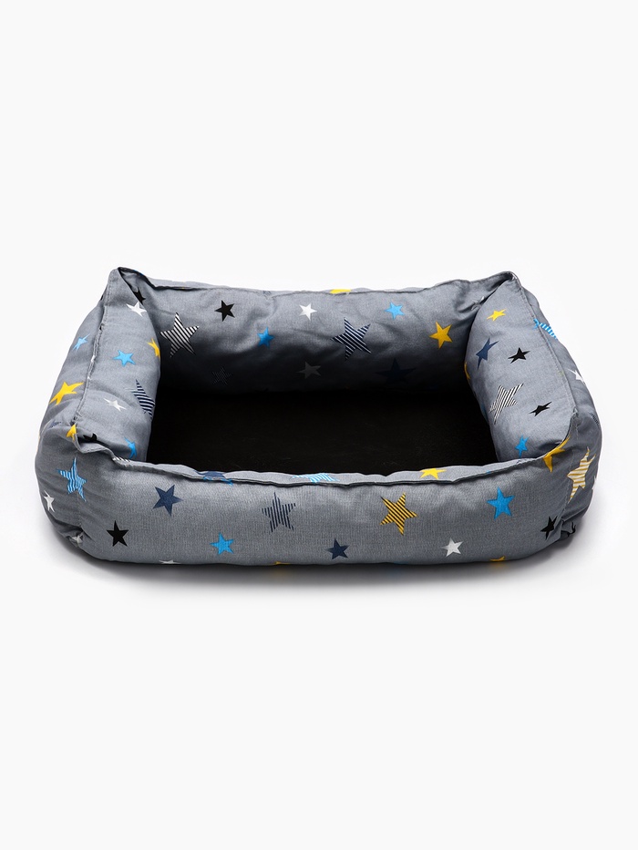 - Внутреннее наполнение: наполнитель закреплён строчкой по периметру и по центральным зонам. Это исключает смещение набивки даже при активном использовании. Поверхность остаётся ровной, без ям и бугров, — важное условие для суставов пожилых или склонных к артриту животных.