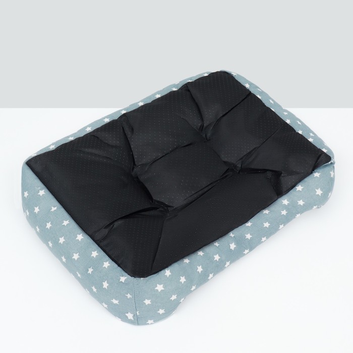 • Внешняя сторона лежанки выполнена из гипоаллергенного материала поплина. Он долго сохраняет первоначальный цвет, практически не линяет, что не может не радовать