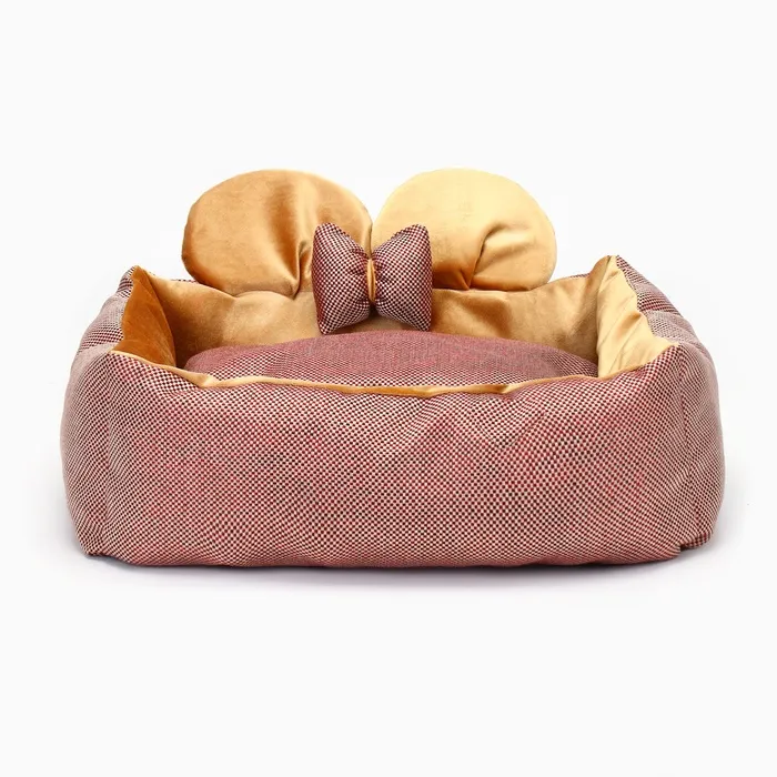Лежанка "Милаш", 52 х 42 х 15, бязь, плюш, бежево-коричневая — Характеристики