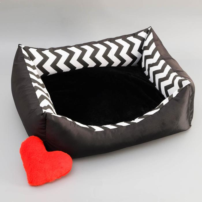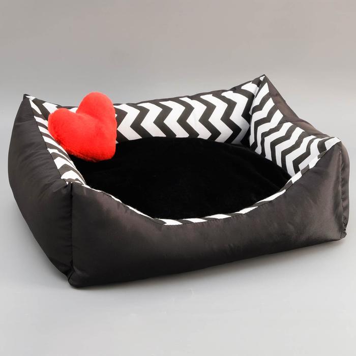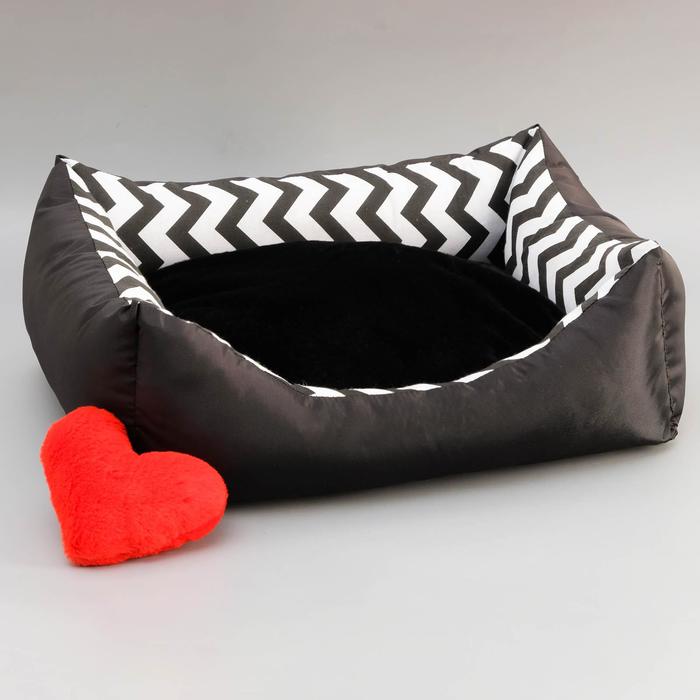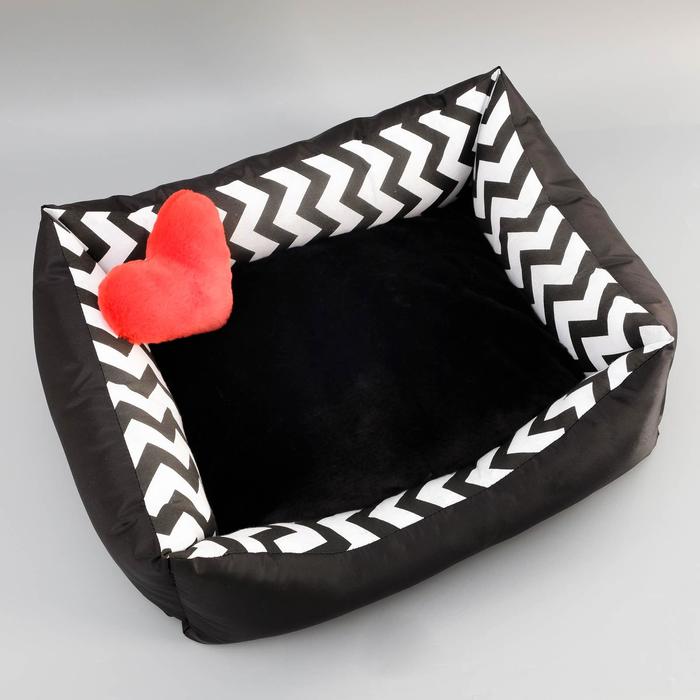 Лежанка с сердечком, 50 х 40 х 15 см, оксфорд, бязь, искусственный мех