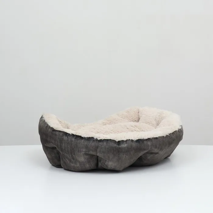 Внешняя часть лежанки выполнена из мягкого велюра, а внутренняя из искусственного меха.