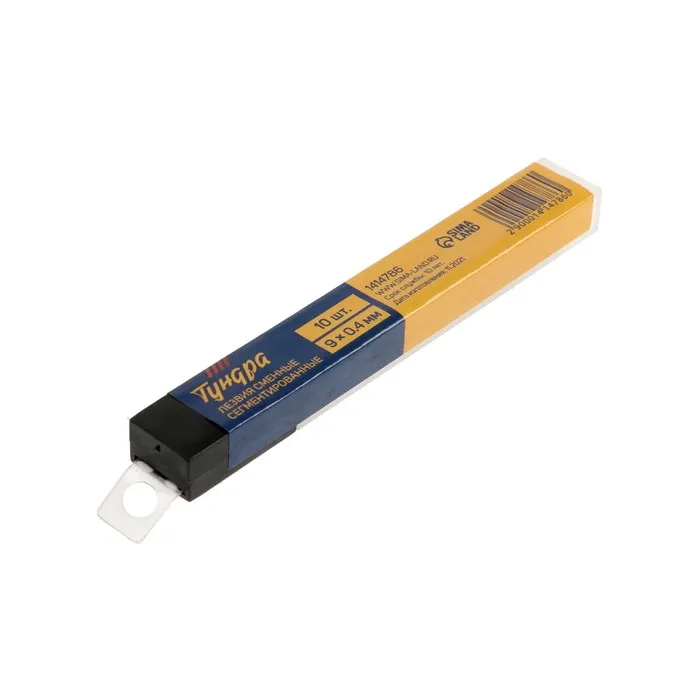 Лезвия для ножей ТУНДРА - представляют собой набор из 10 сегментных лезвий, каждое из которых имеет ширину 9 мм. Лезвия изготовлены из качественных материалов, обеспечивая прочность и долгий срок службы. Дизайн сегментных лезвий позволяет использовать их пошагово, повышая общую эффективность и стойкость.