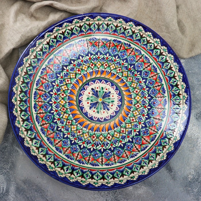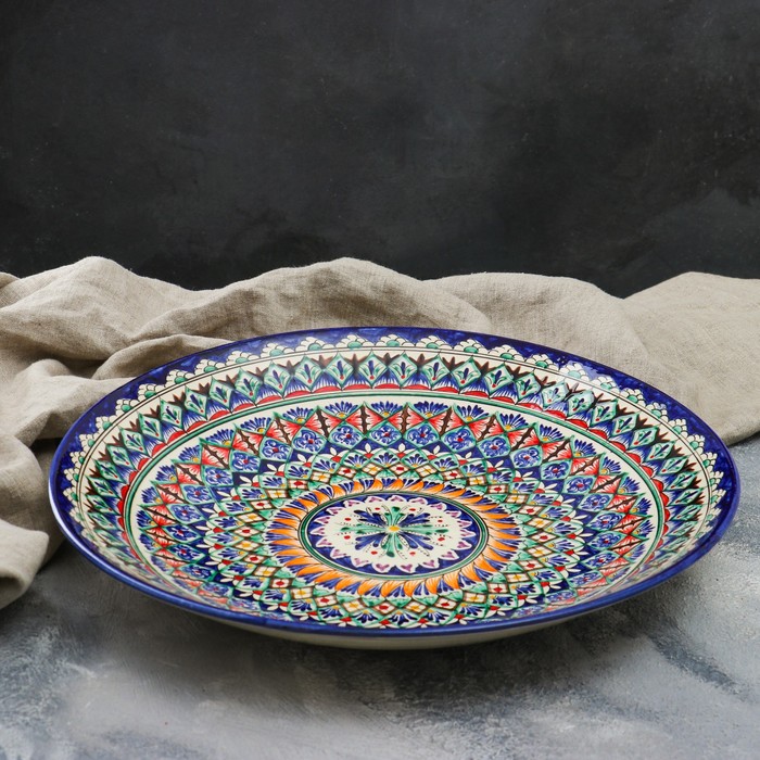 Ляган круглый Риштанская Керамика, 41см, сине-красный, мелкий орнамент — Характеристики