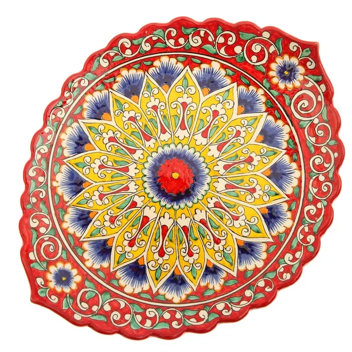 Ляган Риштанская Керамика "Цветы", 31 см, красный, рифлёный — Характеристики