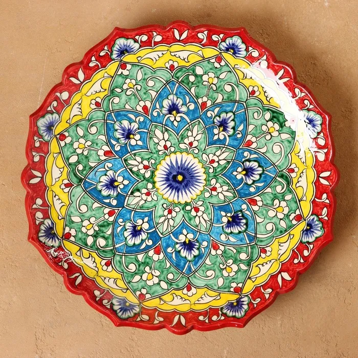 Ляган Риштанская Керамика "Цветы", 32 см, красный микс, рифлённый — Характеристики