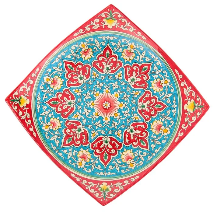 Ляган Риштанская Керамика "Цветы", 33 см, квадратный, красный — Характеристики