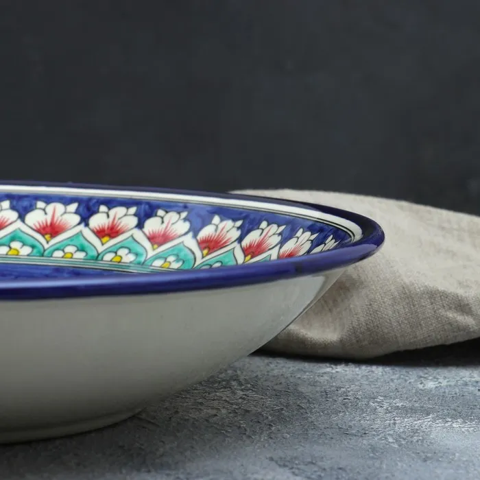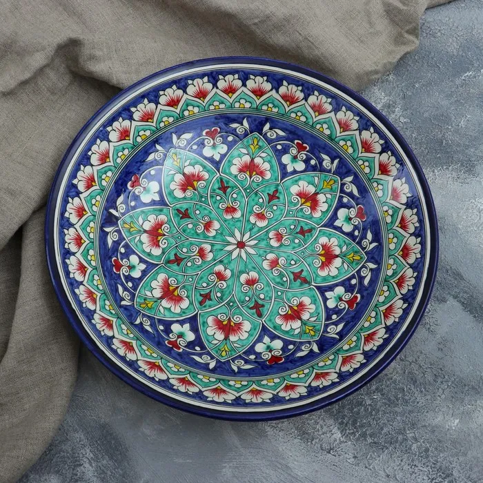 Ляган Риштанская Керамика "Цветы", 33 см, синий — Характеристики