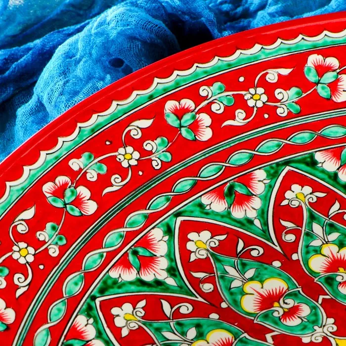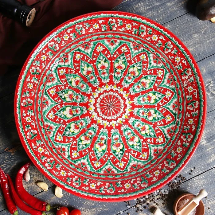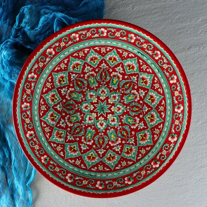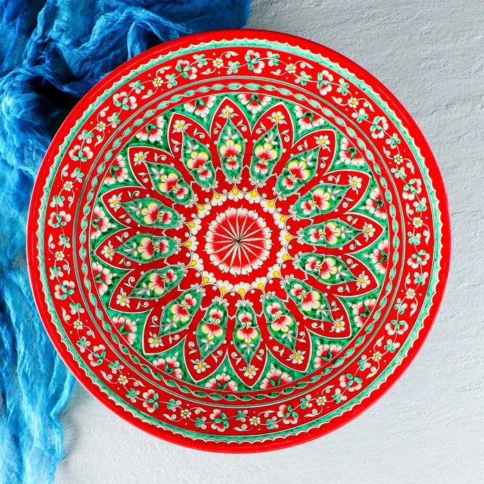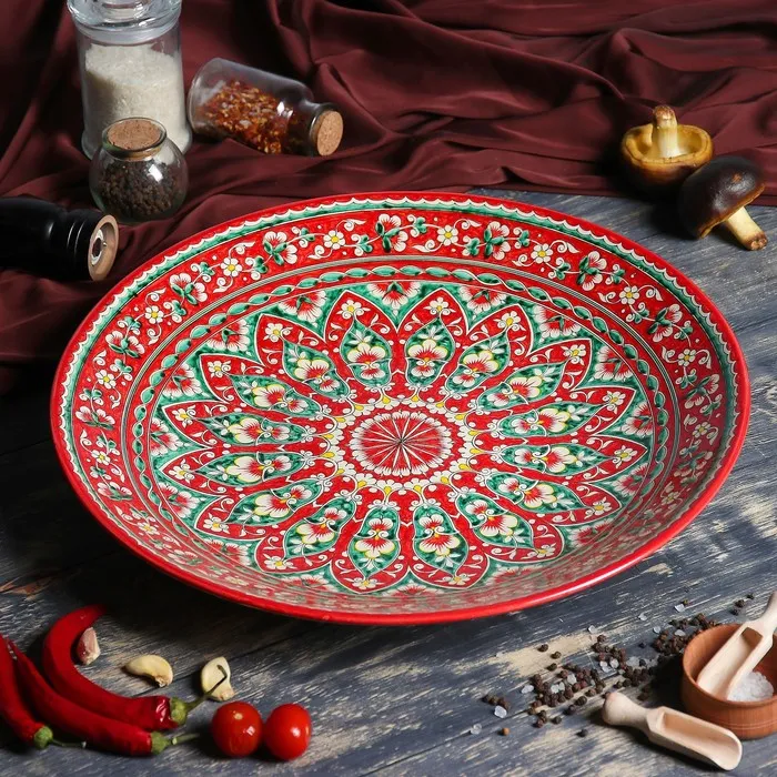 Ляган Риштанская Керамика "Цветы", 41 см, красный — Характеристики