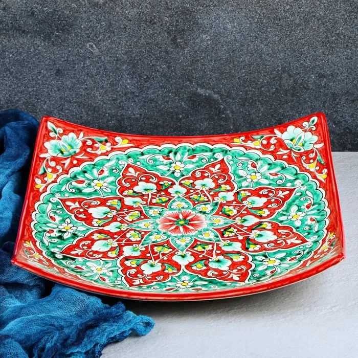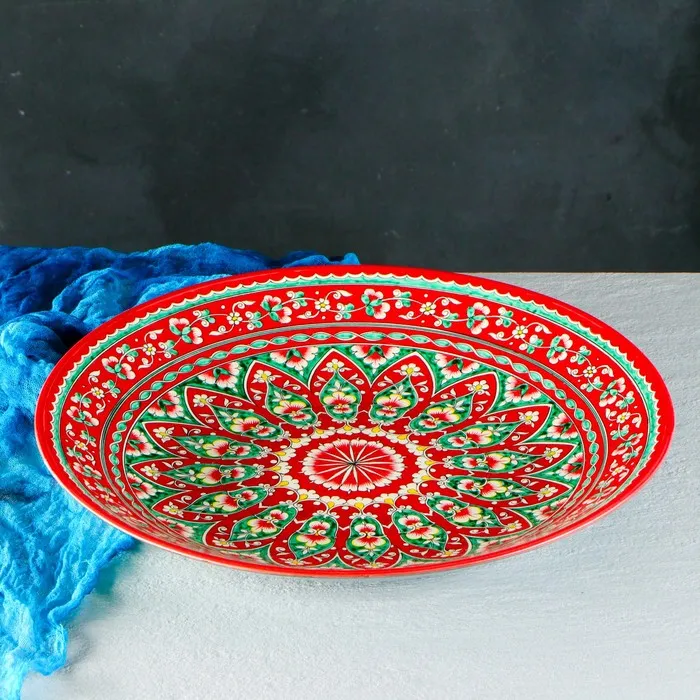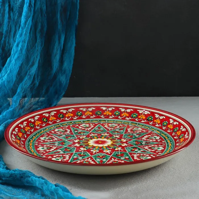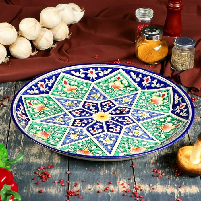 Ляган Риштанская Керамика "Цветы", 42 см, синий — Характеристики