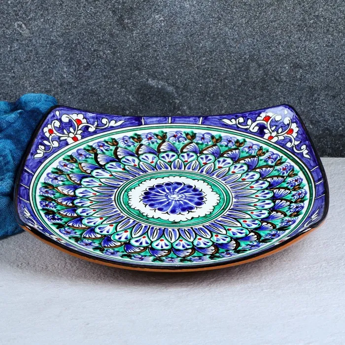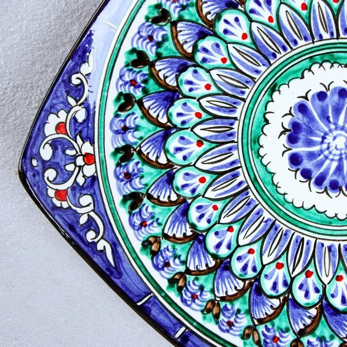 Ляган Риштанская Керамика "Узоры", 25 см, квадратный, синий 2870589 — Характеристики