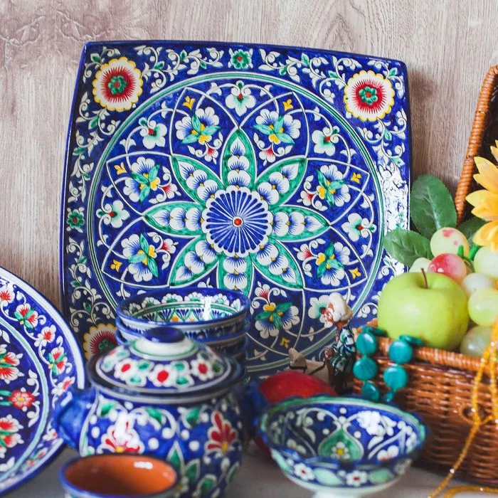 Ляган Риштанская Керамика "Узоры", 31 см, квадратный, синий — Характеристики