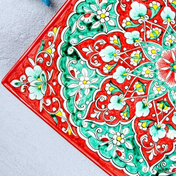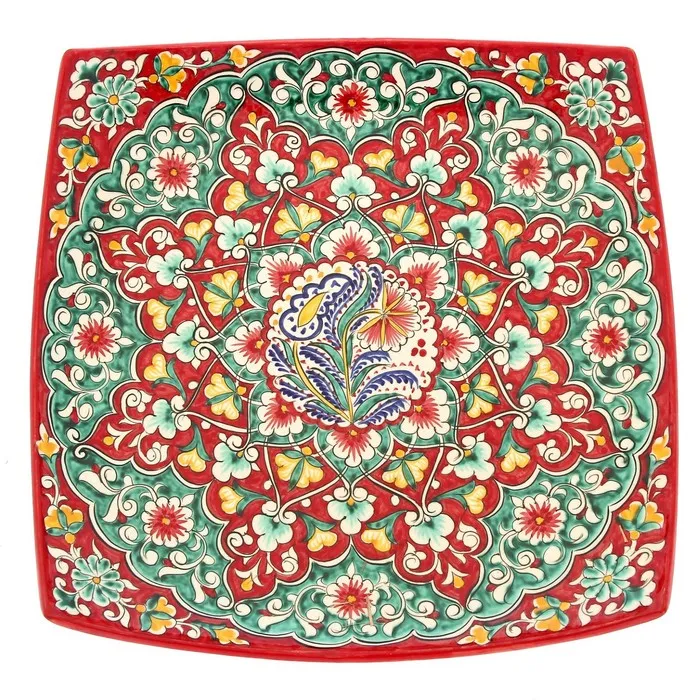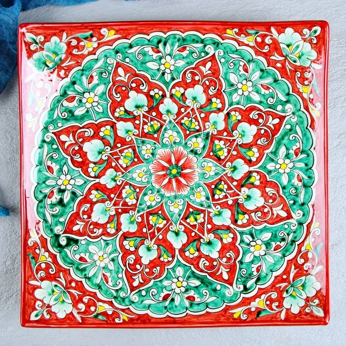 Ляган Риштанская Керамика "Узоры", 33 см, квадратный, красный — Характеристики