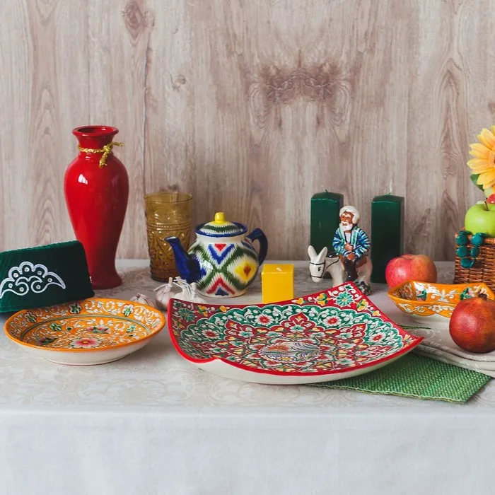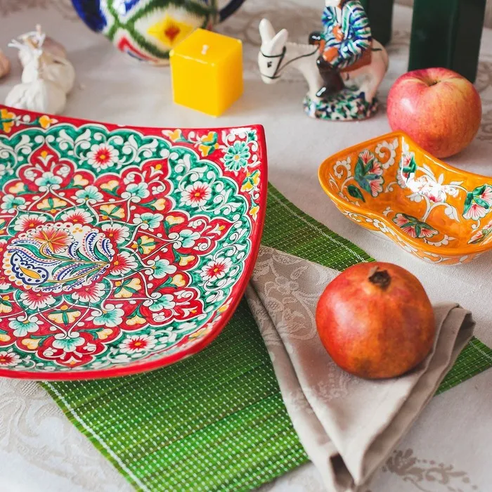 Риштан — город на востоке Узбекистана, один из древнейших в Ферганской долине. С давних времён Риштан славится своим гончарным искусством изготовления цветной керамики. Красноватую глину для изделия добывают в самом городе. Мастера утверждают, что их глина настолько высокого качества, что даже не нуждается в предварительной обработке. Дополните коллекцию кухонных аксессуаров пряными восточными нотами.