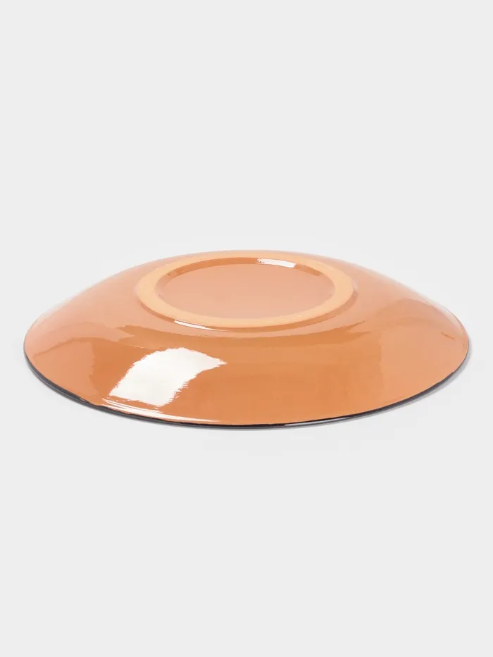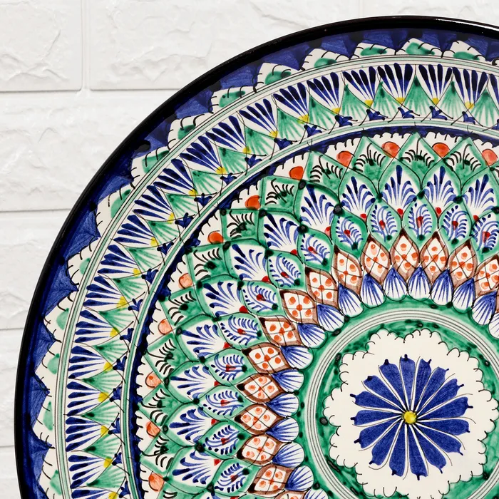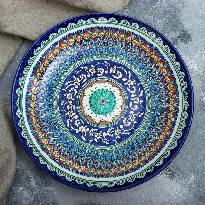 Это не просто посуда, а часть культуры риштанской керамики. Тарелка сохраняет тепло ручной работы — рисунок нанесён тонкими кистями, без трафаретов. Можно разогревать в микроволновке, но для долгой службы лучше не ставить в посудомоечную машину. Идеальна для тех, кто ценит исторические промыслы и хочет добавить в дом уют с характером.