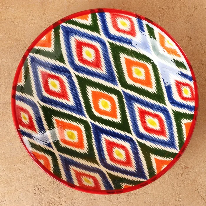 Ляган узбекский Риштанская Керамика «Атлас. Ромбы», d=33 см, разноцветный — Характеристики