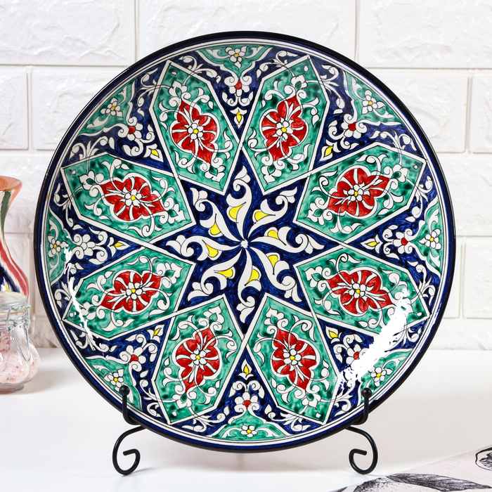 Ляган узбекский Риштанская Керамика «Цветочный узор», d=31 см, синий — Характеристики