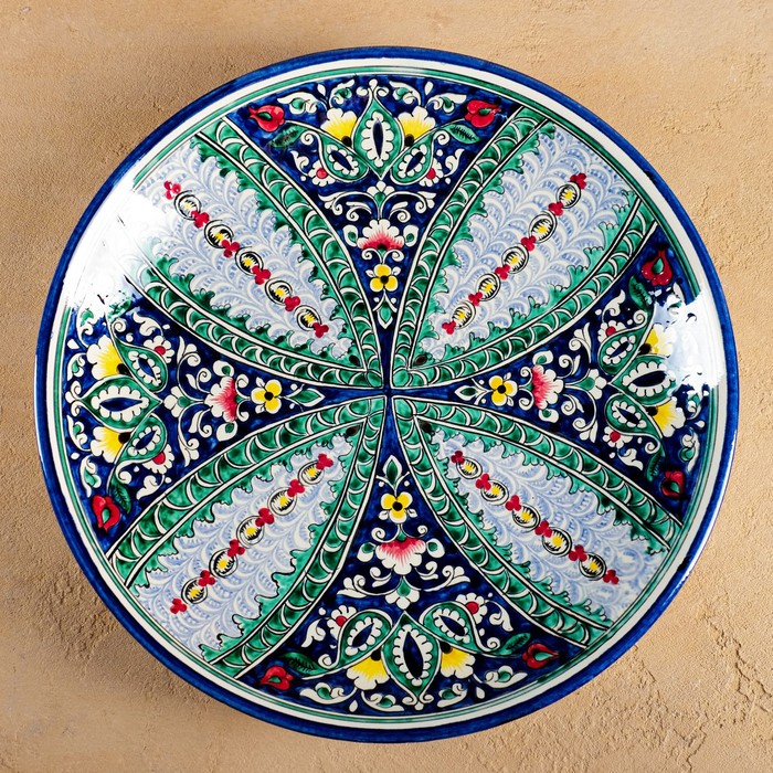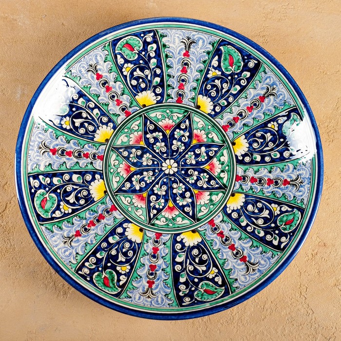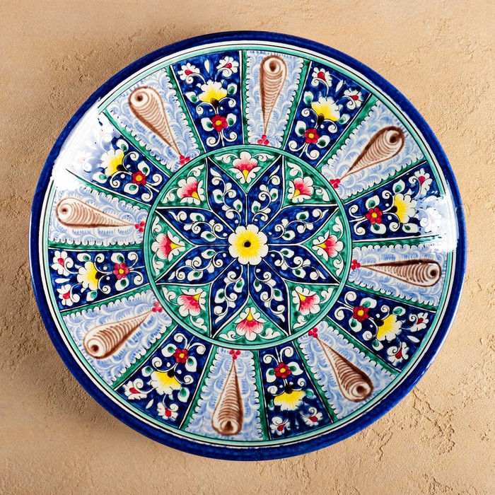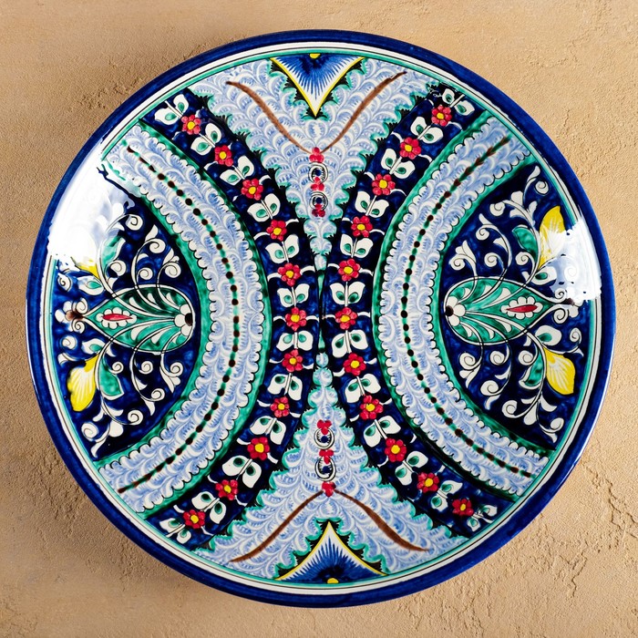 Ляган узбекский Риштанская Керамика «Цветы», d=33 см, синий — Характеристики