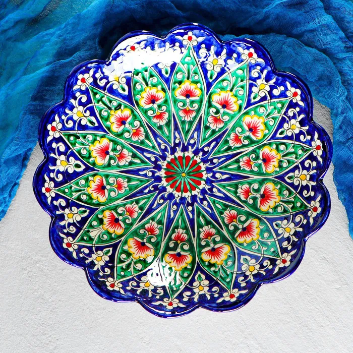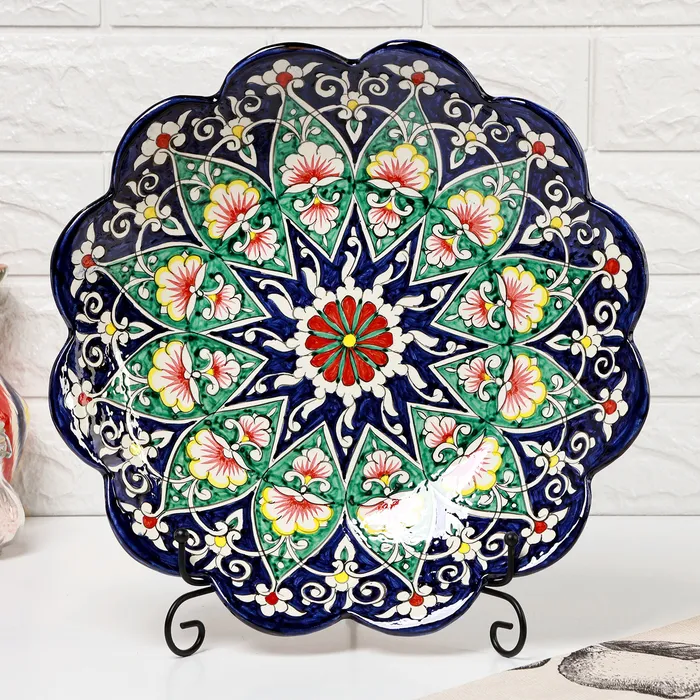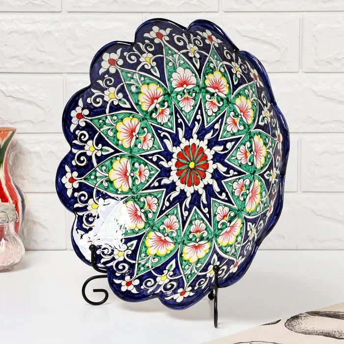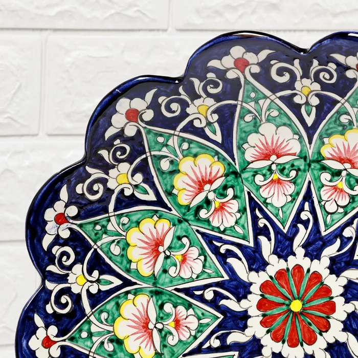 Ляган узбекский Риштанская керамика "Цветы" для плова, 33 см, синий, рифлёный — Характеристики