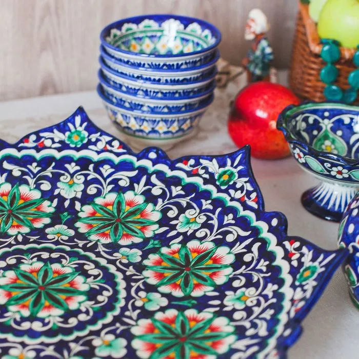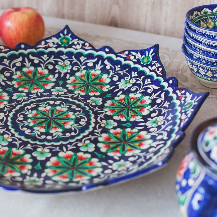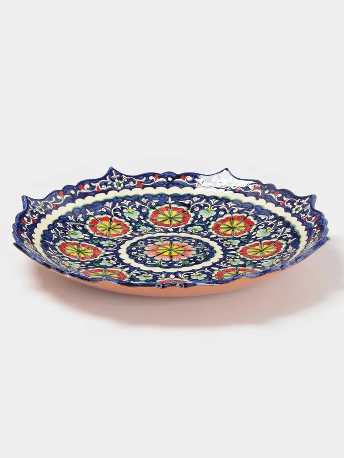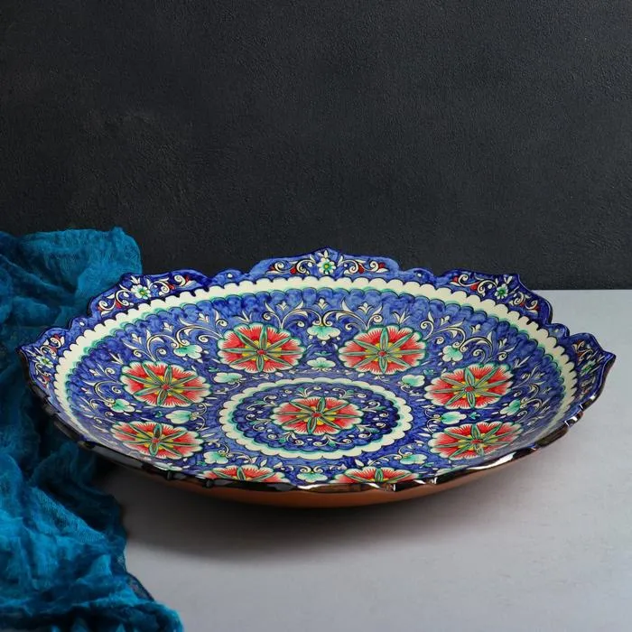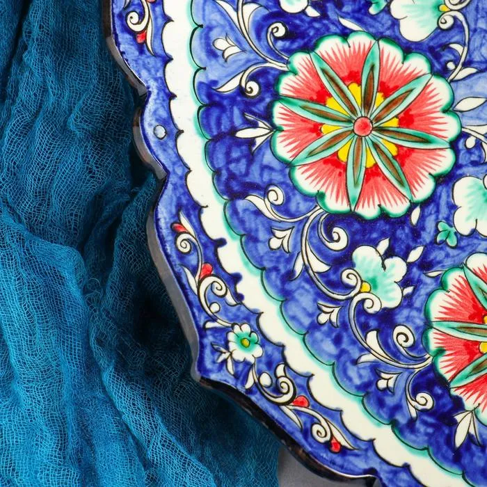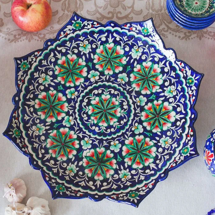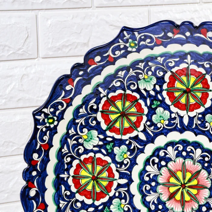 Ляган узбекский Риштанская керамика "Цветы" для плова, 41 см, рифлёный, синий — Характеристики